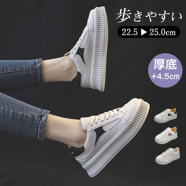 スニーカー レディース 厚底シューズ 通勤通学 厚底スニーカー ローカット 美脚シューズ 歩きやすい フラット ぺたんこ 通気 送料無料
