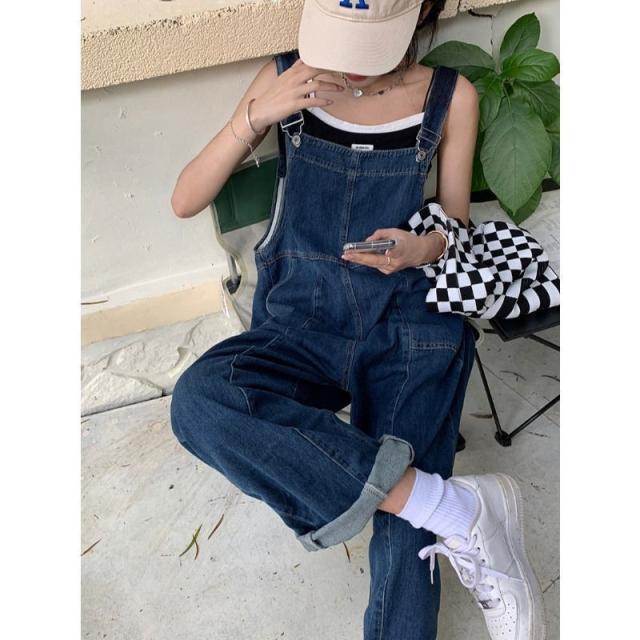 デニムサロペット オーバーオール オールインワン レディース デニムパンツ ワイドパンツ 作業服 ガウチョ サルエルパンツ 楽ちん ゆったり 送料無料