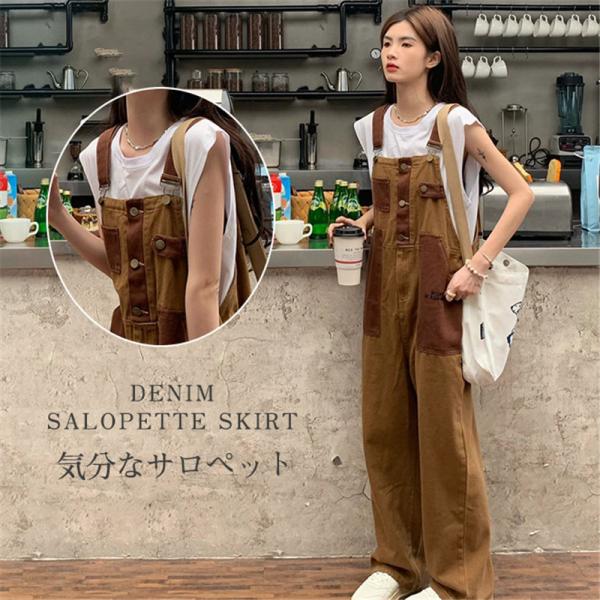 デニムサロペット オーバーオール オールインワン レディース デニムパンツ ワイドパンツ 作業服 ガウチョ サルエルパンツ 楽ちん ゆったり 送料無料