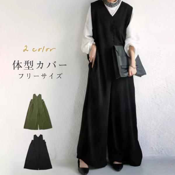 サロペット オーバーオール オールインワン レディース パンツ ワイドパンツ 作業服 ガウチョ サルエルパンツ 楽ちん ゆったり 体型カバー 送料無料