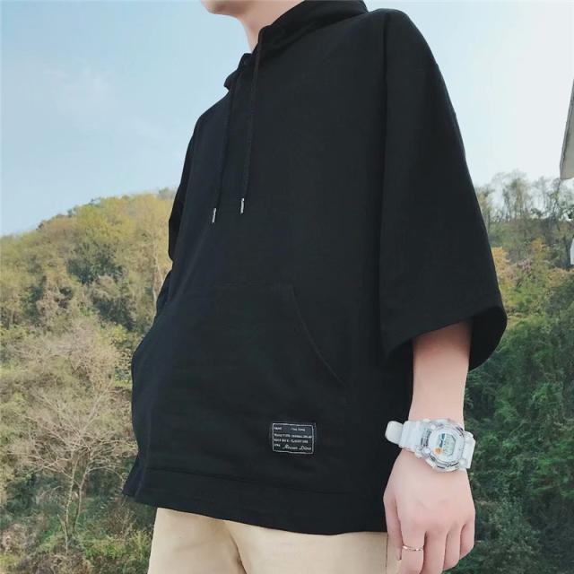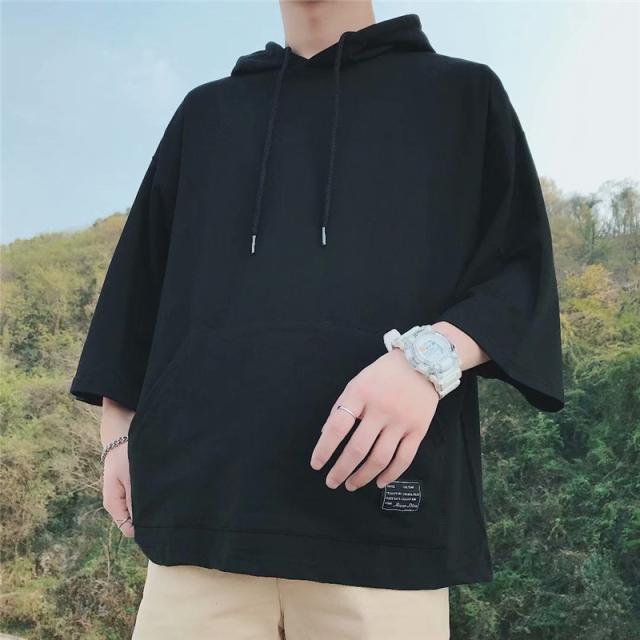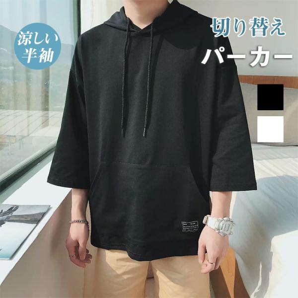 半袖パーカー メンズ 半袖 切り替え フード付き 薄手 暑さ対策 トップス カットソー 涼しい ゆったり 重ね着 カジュアル 肌触り 通気 送料無料