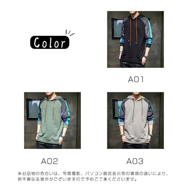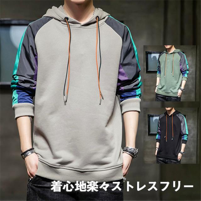 パーカー メンズ 長袖 スウェット プルオーバー トップス ルームウェア フード付き 春服 秋服 ゆったり 切り替え 通気 運動着 部屋着 送料無料