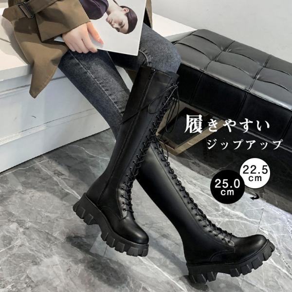 ロングブーツ レディース ブーツ ロング丈 ローヒール フラット 疲れにくい 美脚ブーツ ジップ トレンド くない 除臭 春秋 送料無料