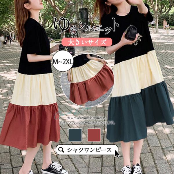 ワンピース レディース ドレス ブラウス ロング丈 半袖 ナチュラル フィギュア 着痩せ ゆったり tシャツ シンプル カットソー 柔らかい 送料無料