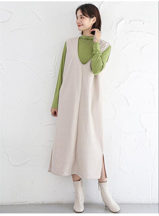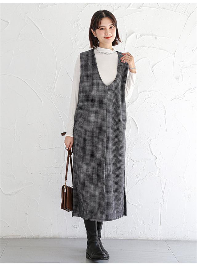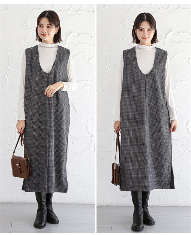 ジャンパースカート ノースリーブワンピース 2way ジャンスカ vネック マタニティ レディース 春秋冬 体型カバー ストレートシルエット送料無料