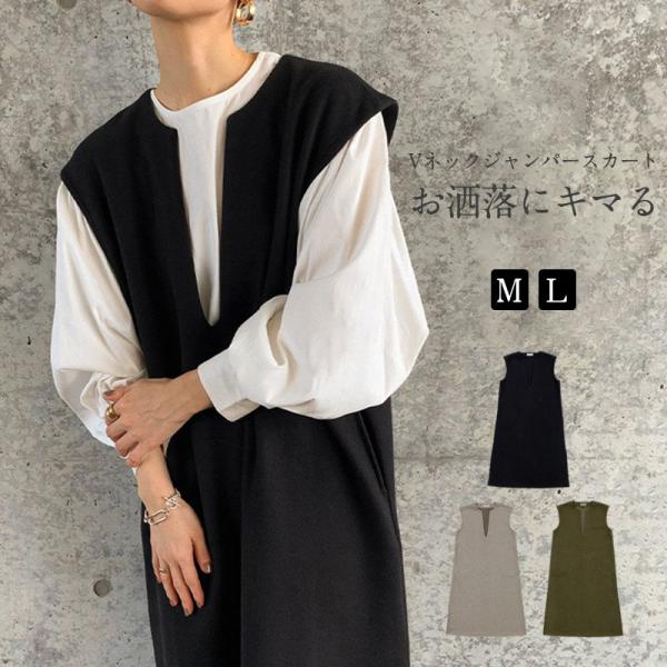 ■商品詳細:●カラー:/A01/A02/A03●サイズ:/M/L●素材:ポリエステル、レーヨン■商品説明◎深めのVネックでレイヤードスタイルを楽しめるジャンパースカート。◎顔回りをすっきり見せてくれ、、華奢見えワンピース。◎Iラインのシルエットで細見えにも期待できます。◎サイドスリット入りでキレイめにもカジュアルにも着こなしが可能。◎大きめのポケット付きで機能にも優れてます◎ニット次第で秋冬から春先に長く楽しめる。◎着回し力抜群の万能アイテムです。★キーワード:Iライン ワンピース ジャンパースカート vネック 大人 秋 冬 秋冬 レディース 大きいサイズ きれいめ おしゃれ オフィスカジュアル セット ジャンスカ 膝丈※生産ロットにより、商品のデザインが異なる場合がございます。※寸法は手測りなので若干誤差がございますが、ご了承くださいませ。