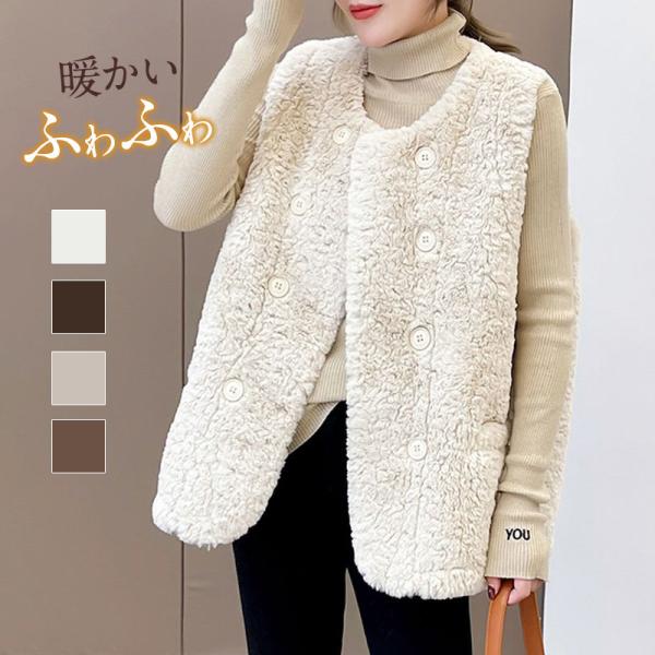 ボアベスト レディース ジャケット アウター チョッキ ファー フリースベスト ジレ 前開き もこもこ ゆったり 着痩せ 暖かい 防寒 防風 送料無料