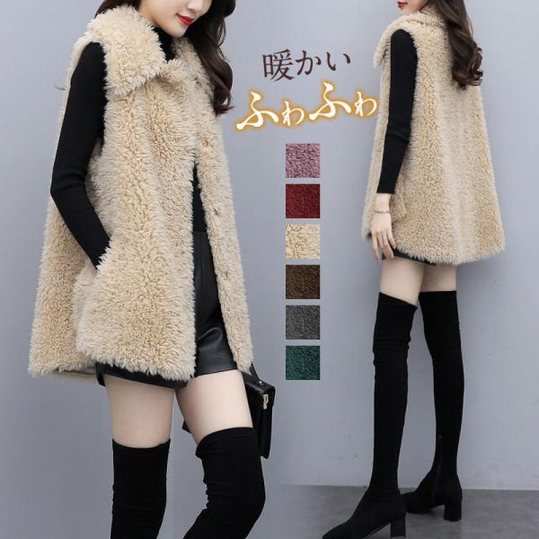 ボアベスト レディース ジャケット アウター チョッキ ファー フリースベスト ジレ 前開き もこもこ ゆったり 着痩せ 暖かい 防寒 防風 送料無料