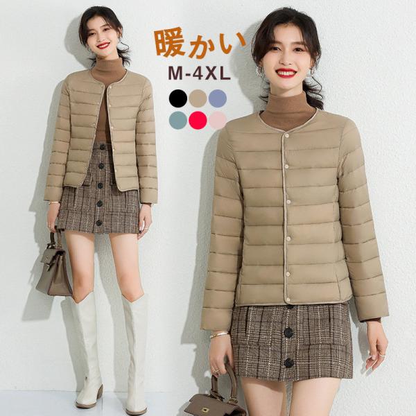中綿コート レディース キルティングコート ダウンジャケット ダウンコート 秋冬 ショット丈 軽量 アウター 韓国風 ノーカラー OL 通勤 送料無料