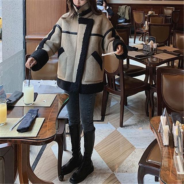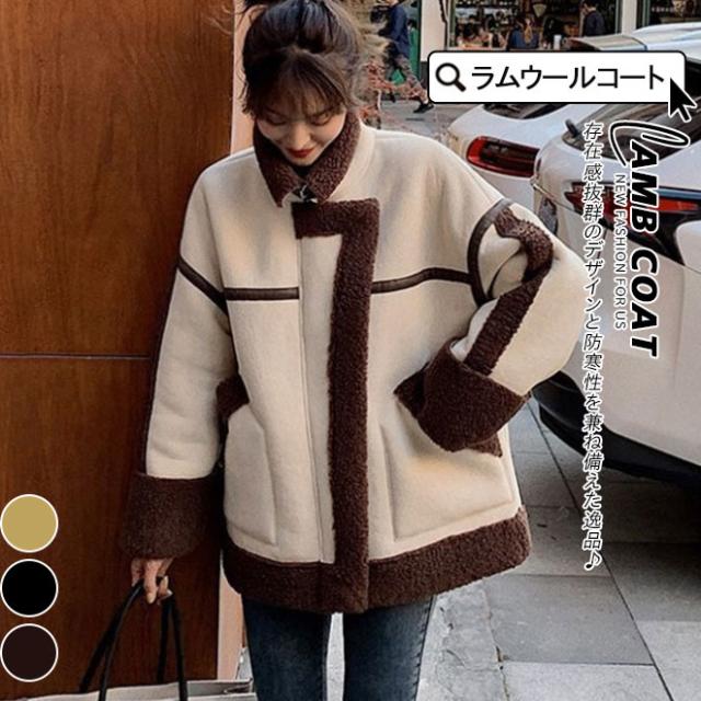 ラムウールコート ボアコート レディース ジャケット ムートンコート 折り襟 中綿コート ミディアム丈 ルーズコート アウター 着痩せ 中綿ジャケット