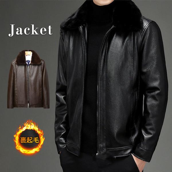レザーコート 革ジャン メンズ レザージャケット 裏起毛 アメカジ アウター 秋冬 PUレザー ライダースジャケット 開襟 防風 防寒 上品 送料無料