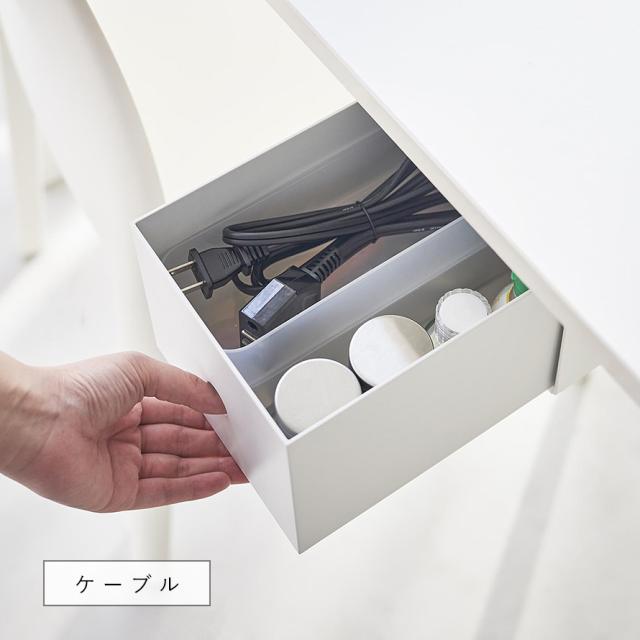 テーブルやデスク下のデッドスペースを利用して、小物類をまとめて収納!市販の収納ボックスを使って、引き出しを自作できます。