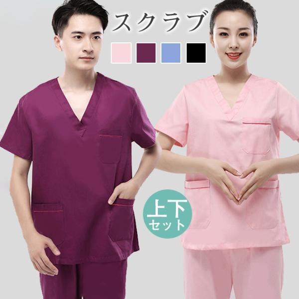 スクラブ セット 上下セット 白衣 レディース 半袖 ドクター 歯医者 ユニフォーム メンズ 美容 サロン ナース服 医務衣 介護施設 送料無料