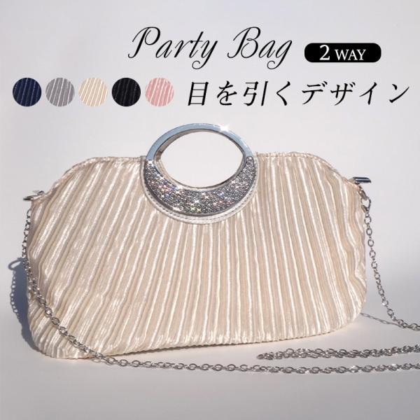 パーティーバッグ ハンドバッグ レディース クラッチバッグ チェーン 2way ショルダー バッグ プリーツサテン サブバッグ フォーマル 送料無料