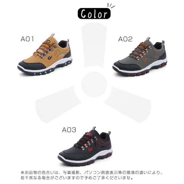 ■商品詳細:●カラー:/A01/A02/A03●サイズ:/24/24.5/25/25.5/26/26.5/27●素材:(アッパー) 合繊/合皮 (底材) 合成ゴム■商品説明◎吸汗 -通気もよく、季節を問わずオールシーズンでご利用いただけます。◎長時間歩いてもできる限りストレスを低減される工夫が施されております。◎ランニング、登山、ジム、通学、散歩、アウトドア活動などいろいろな運動に適用します。◎通気とがよりよく、足あたりはさらに柔らかく履いたらとても気持ちいいです。★キーワード:ローカット 山登り 疲れにくい アクッション 厚底 アウトドア 通勤通学 滑り止め 運動靴 運動会 プレゼント ギフト お母さん ママ 運動 体育感 シンプル オシャレ カジュアル 高め 定番 上品 高級感 安定 楽ちん 楽チン メッシュ 学生靴 メンズ レディース 軽量 ゴルフ 釣り アウトドアシューズ 歩きやすい※生産ロットにより、商品のデザインが異なる場合がございます。