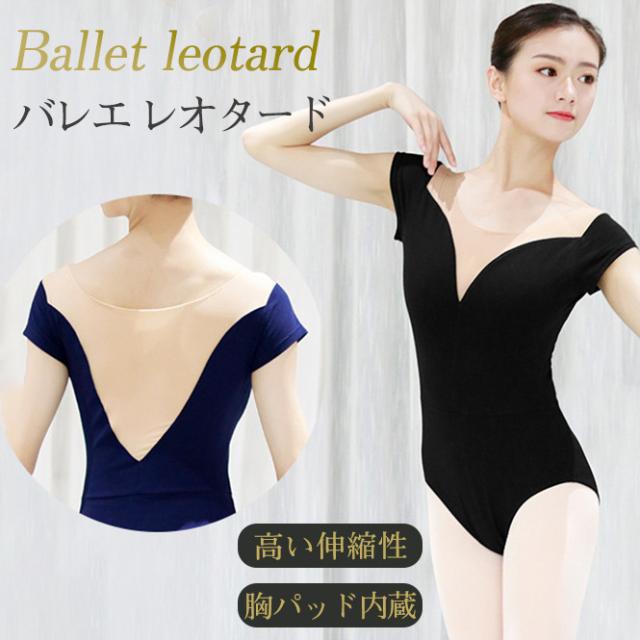 バレエ レオタード バレエ用品 大人用 ジュニア パット付き 新体操 半袖 練習用 ダンス ストレッチ レッスン着 スカートなし ヨガ 競技 送料無料