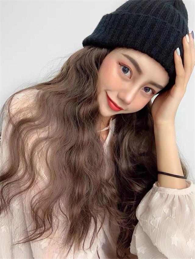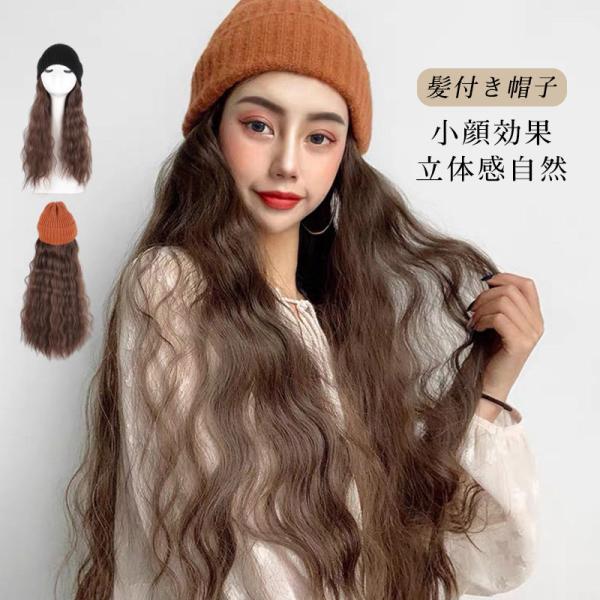 明日まで値引き 帽子ウィッグ レディース かつら ロング巻き 暖かい つけ毛 エクステ キャップ 髪付き帽子 セミロング 自然パーマ ニット 日常用 可愛い