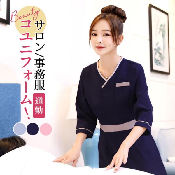 ユニフォーム エステ レディース サロン 通勤 女 制服 作業服 ネイル 美容室 サロン 化粧品販売 半袖 ワンピース セラピスト 送料無料