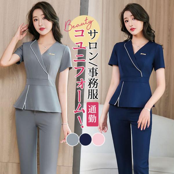 ユニフォーム エステ レディース サロン 通勤 女 制服 事務服 ネイル 美容 サロン 歯科衛生士 半袖 セット クリニック 送料無料