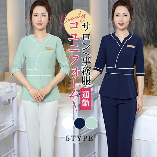 ユニフォーム エステ レディース サロン 通勤 女 制服 作業服 ネイル 美容 サロン 化粧品販売 半袖 セット セラピスト 送料無料