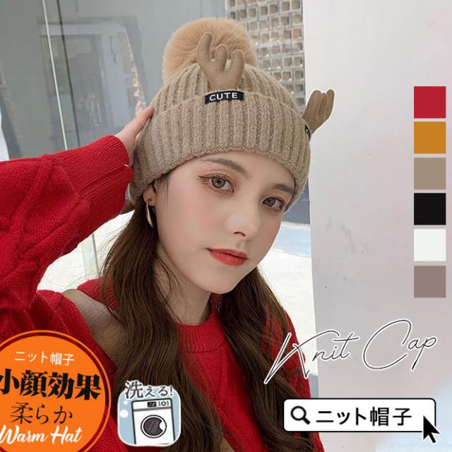 ニット帽子 レディース エルフ飾り 柔らか ニットキャップ アウトドア あったかい 小顔 キャスケット ふんわり 防寒保温 スヌード ポンポン飾り