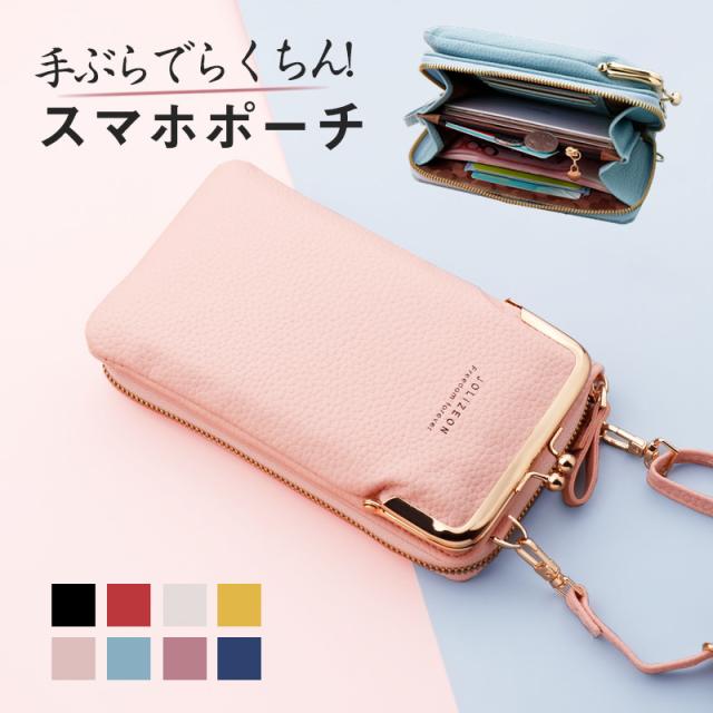 スマホポーチ スマホポシェット レディース ショルダーバッグ がま口 携帯電話バッグ 縦型 財布 カードケース 軽量 肩掛け スマホバッグ 送料無料