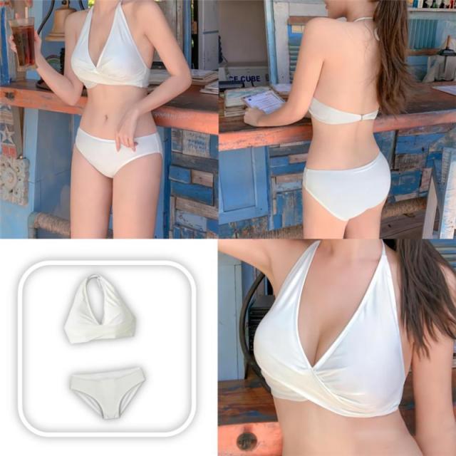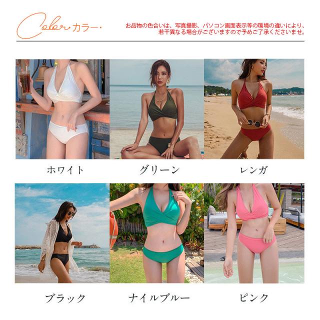 国内入荷済み 最大15%OFF 一部即納 水着 レディース ビキニ セクシー ホルターネック 胸パッド ワイヤーなし クロス セパレート ビーチ 盛れる 2点セット