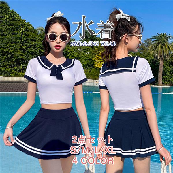 水着 レディース 水着セット 2点セット タンキニ セパレート セーラー服 チェック柄 スクール JK 胸パッド ワイヤー無 スイムウェア 送料無料