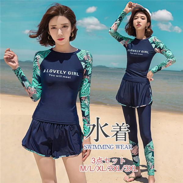 水着 レディース 水着セット 3点セット タンキニ セパレート ラッシュガード 海水浴 リゾート 胸パッド ワイヤー無し フィットネス 長袖 送料無料