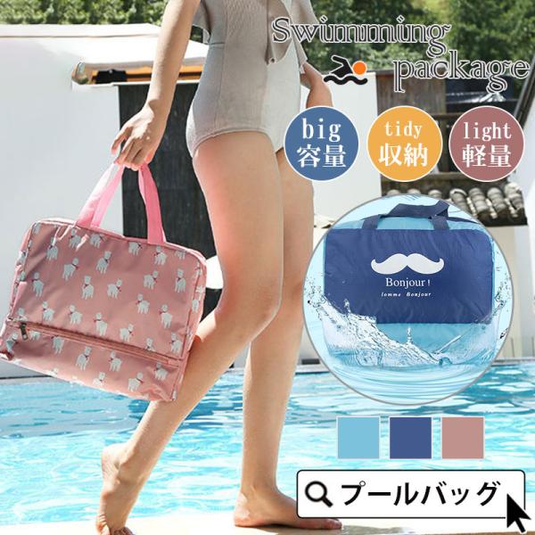 プールバッグ ビーチバッグ スイミングバッグ スクール水着入れ 大容量 水泳バック 乾湿分離 大学生 高校生 収納 折り畳み 幅広 シンプル 送料無料