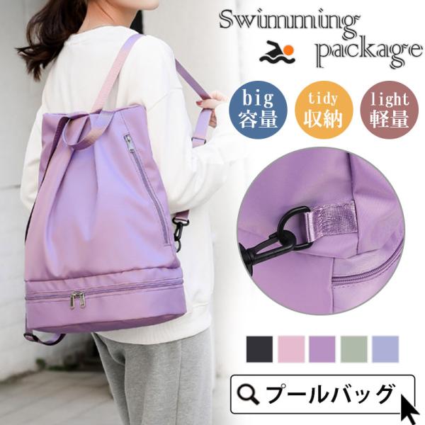 プールバッグ ビーチバッグ スイミングバッグ スクール水着入れ 水泳バック 乾湿分離 大学生 高校生 リュック型 折り畳み ナップザック 送料無料