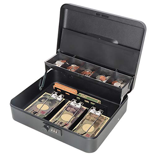 Jssmstジェスマット 手提金庫 ダイヤル式 会計用コインケース 3つスプリングクリップ 紙幣整理 金属製 30x24x8.8cm 黒 ダイヤ
