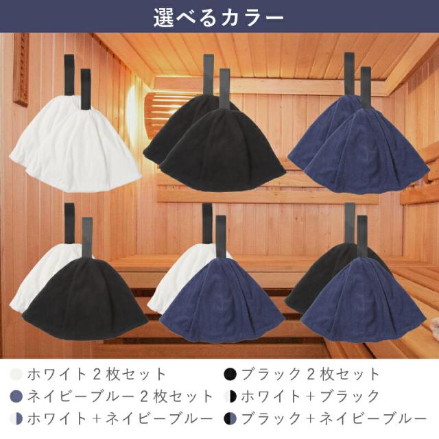 2枚セット 大きめ タオル生地 大きいサイズ 吸水 汗吸収 メンズ レディース 男女兼用 サウナキャップ サウナ帽子 タオル 洗える 洗濯機 選べる3色 ホワイト ブラック ブルー ととのう サ活 温泉 銭湯