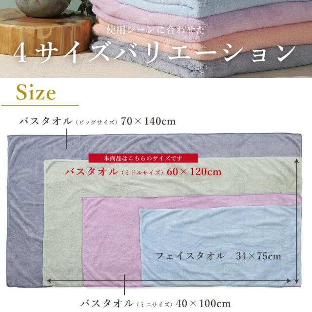 ミドルサイズ バスタオル 4枚セット マイクロファイバー 60cm×120cm 早く乾く ジャストサイズ 驚きのやわらかさ 速乾 吸水 まとめ買い 吸水バスタオル お手頃サイズ やわらかバスタオル ふわふわ 吸収