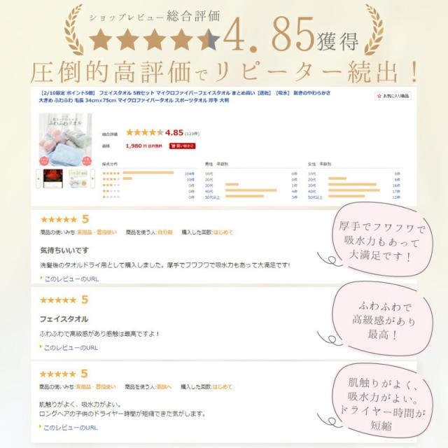 フェイスタオル 5枚セット マイクロファイバーフェイスタオル まとめ買い【速乾】【吸水】 驚きのやわらかさ 大きめ ふわふわ 毛長 34cm×75cm マイクロファイバータオル スポーツタオル 厚手 大判