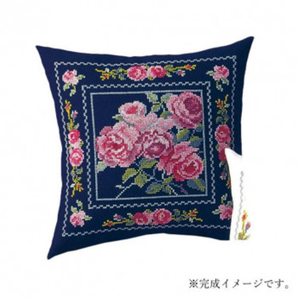 ししゅうキット クッション エレガントローズ 5894(紺) |b03
