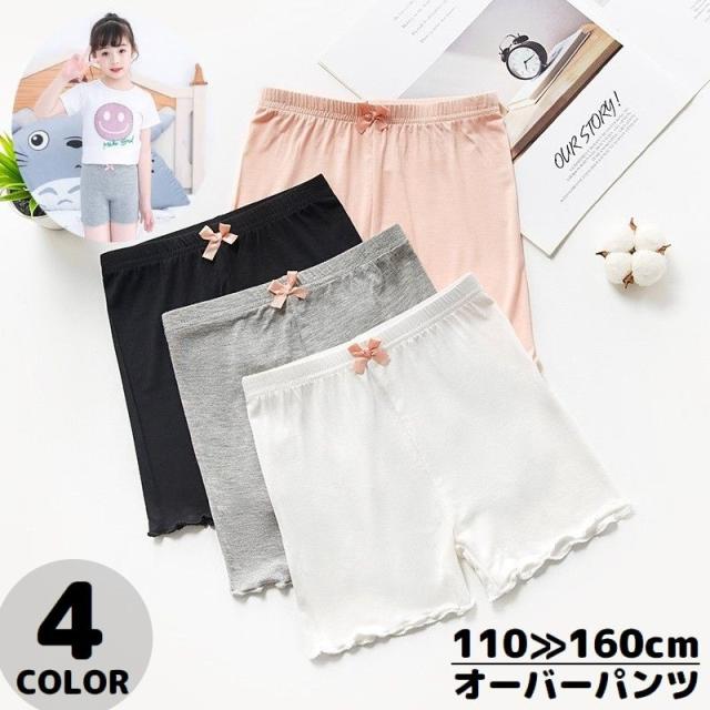 オーバーパンツ 子供 キッズ ジュニア 女の子 インナーパンツ ペチパンツ 見せパン スパッツ 薄手 無地 リボン メロウフリル