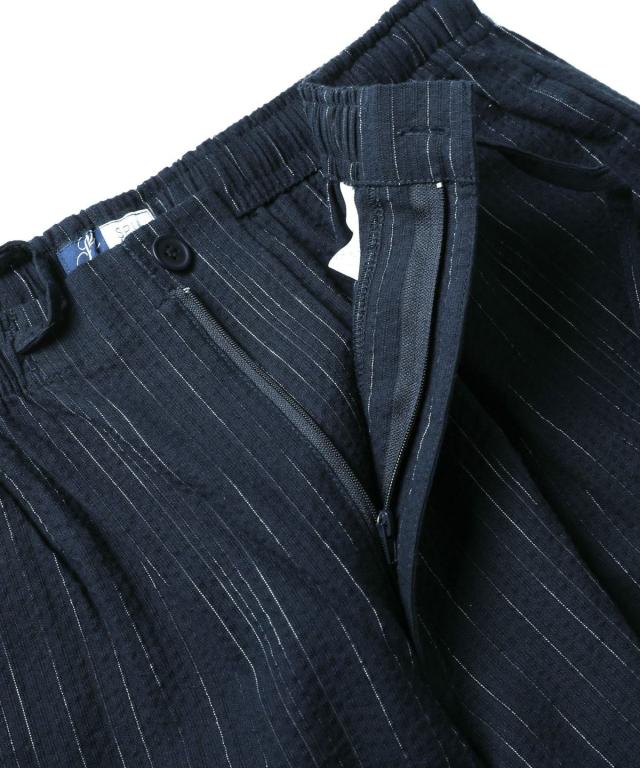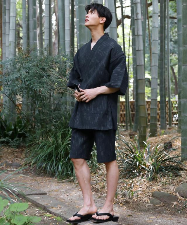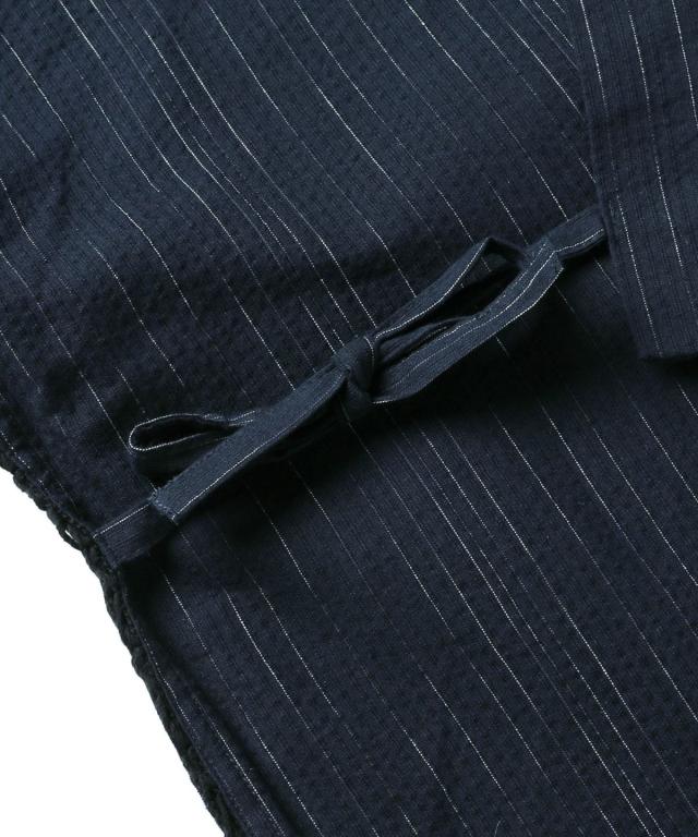 よく見かける甚平のパンツはほとんどが紐を縛るタイプかゴムウエストです。こちらの甚平には、より着脱しやすくトイレにも行きやすくなるように便利なジップフライを採用いたしました。ウエストのゴムと調節用の紐も通しているので窮屈感なく穿き続けていただけます。