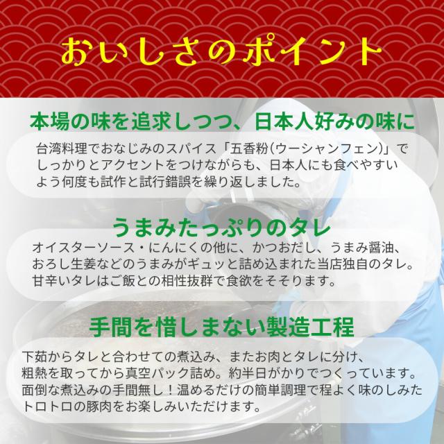 魯肉飯は貧しかった台湾の農民が、貴重な豚肉を家族が均等に食べられるようにと、細かく刻んで煮込み、ごはんにかけたのが始まりだといわれているそうです。