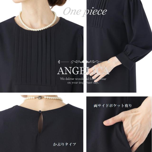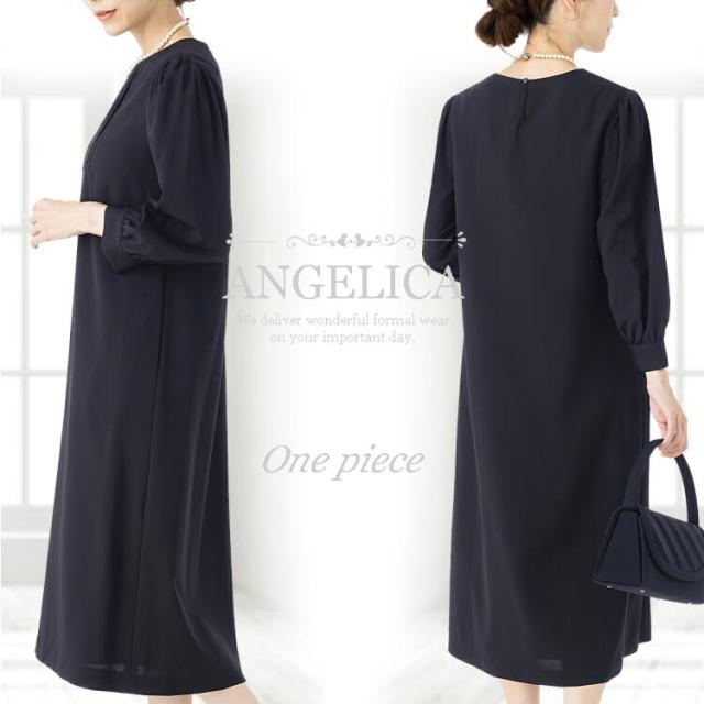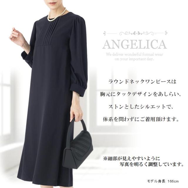 ラウンドネックワンピースは胸元にタックデザインをあしらった、