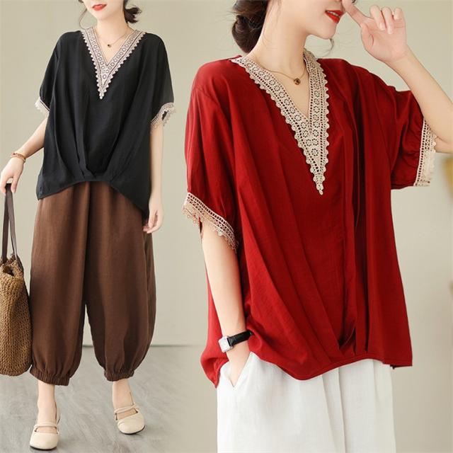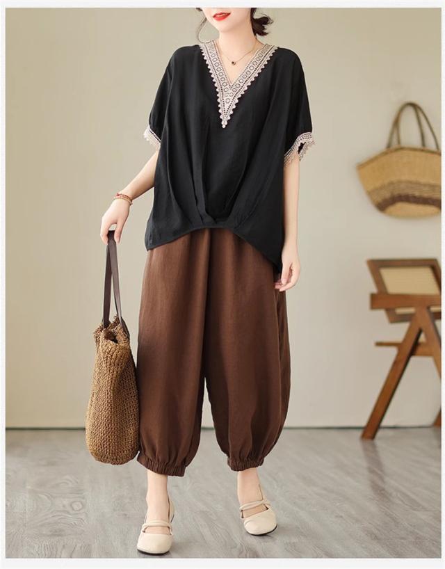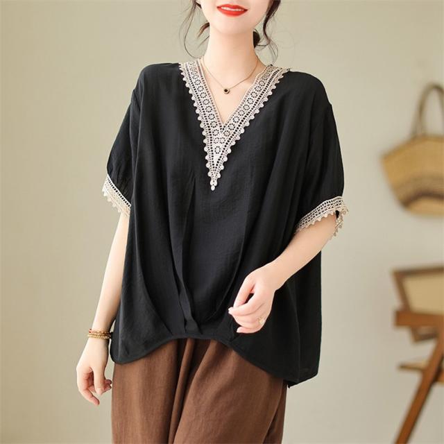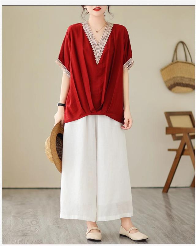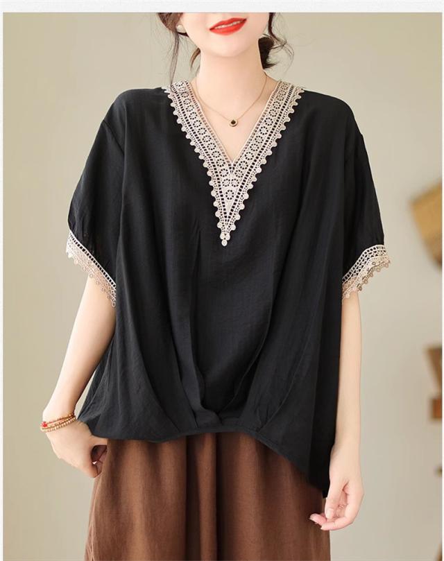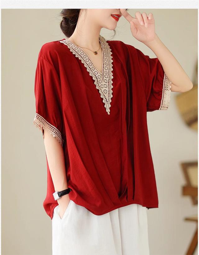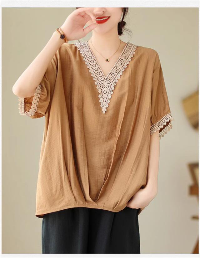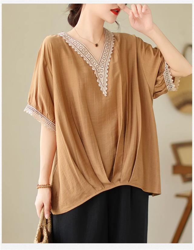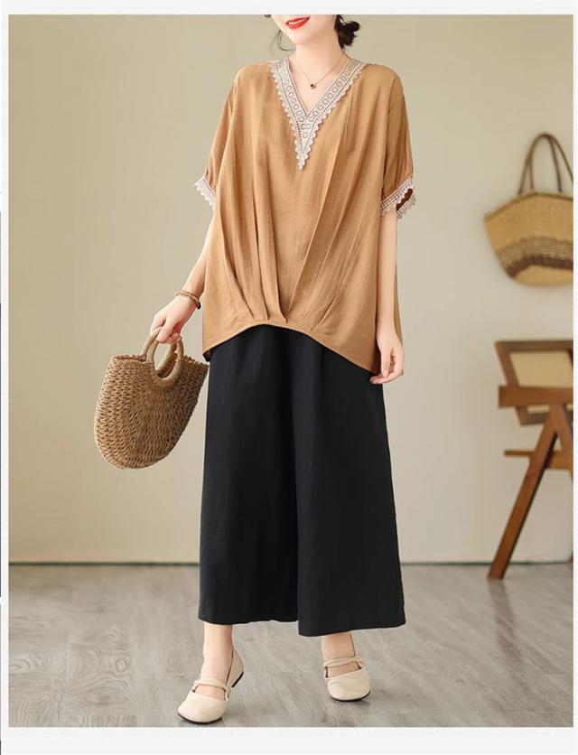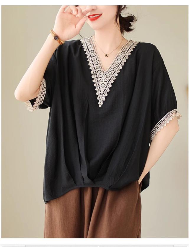 ブラウス レディース 夏トップス レース プルオーバー 半袖 程よいオーバーサイズ 軽やかな素材が抜け感を演出 キレイめはもちろんカジュアルにも◎