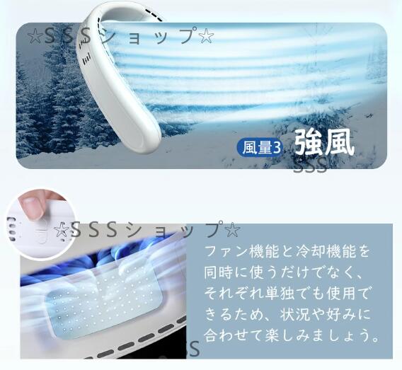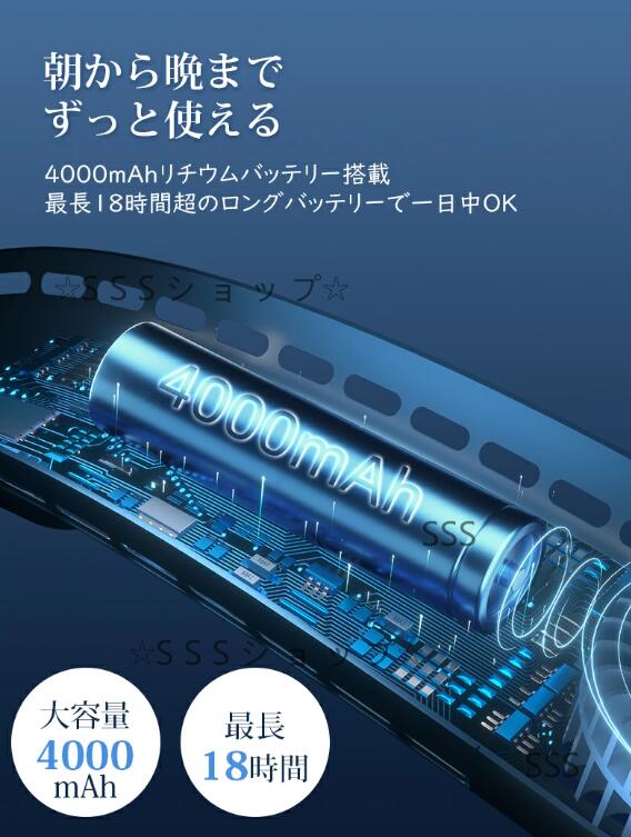 首掛け扇風機 ネッククーラー 1秒冷却 ダブル 冷却プレート 4000mAh 上下送風 静音設計 3段階風量調節 超ロングバッテリー