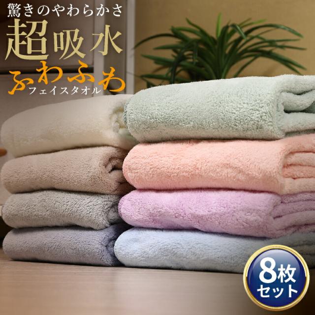 フェイスタオル 8枚セット マイクロファイバーフェイスタオル まとめ買い 速乾 吸水 驚きのやわらかさ 大きめ ふわふわ 34cm×75cm マイクロファイバータオル スポーツタオル 厚手 大判
