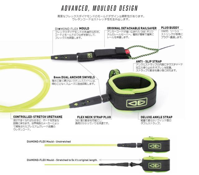 OCEAN&EARTH サーフィン リーシュコード DIAMOND FLEX 6’0 ANKLE 足首用 6ft オーシャン&アース ショートボード リーシュ