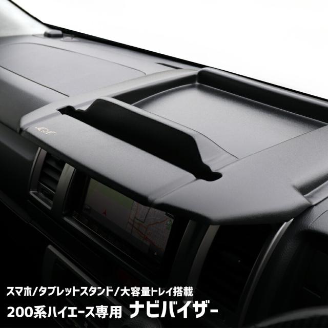 200系 ハイエース 1型 2型 3型 4型 前期 後期 5型 6型 ワイド用 トレイ付 ナビバイザー レジアスエース カーナビバイザー/トレイ付き スマホホルダー ワイドボディ マットブラック 内装 カスタム パーツ DIY インテリア