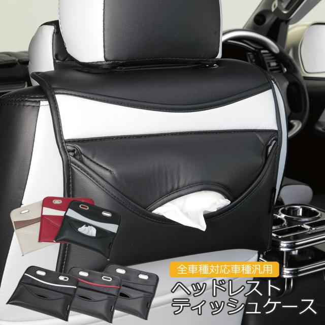 ヘッドレスト ティッシュケース LEGANCE レガンス カー用品 便利グッズ レザー シート 車部品 汎用 スマホ ポケット カーボンホワイト カーボンレッド カーボンブラック ベージュ ボルドー ブラック