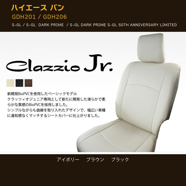 200系 ハイエース シートカバー 2列タイプ 1型 2型 3型 4型 前期 後期(5型) S-GL 型式 GDH201 / GDH206 グレードS-GL / S-GL DARK PRIME / S-GL“DARK PRIME2 S-GL 50TH ANNIVERSARY LIMITED 適合形状 ディーゼル車 クラッツィオ ジュニア