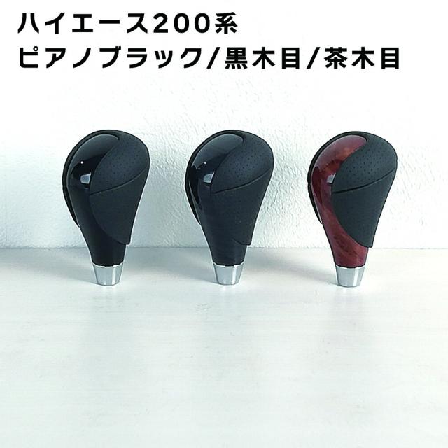 シフトノブ ウッド 太グリップ ハイエース 200系 1型 2型 3型 4型 5型 6型 前期 後期 標準 ナロー ワイド 全型 フロント シフトチェンジ 黒木目 茶木目 ピアノブラック 内装 パーツ インテリア