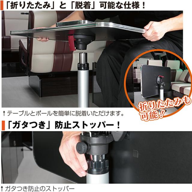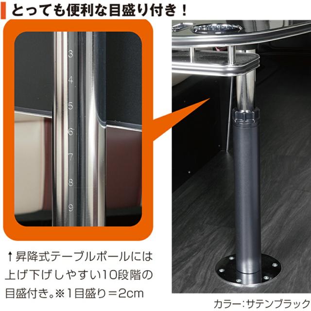昇降式 テーブルポール キット レガンス LEGANCE キャンピングカー パーツ インテリア テーブル 増設 DIY スタンド 段階式 高さ調節 机 土台 脚 ハイエース サテンブラック 車 キャンプ ポール 便利