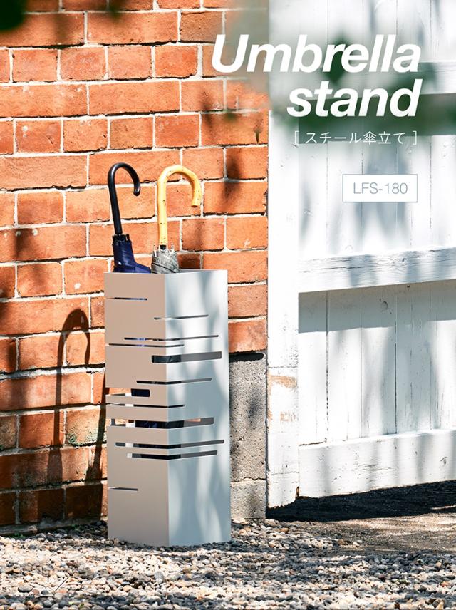 傘立て 2色対応 アンブレラスタンド 玄関収納 傘たて かさ立て スチール 花瓶 屋外 屋内 スリム コンパクト トレイ付き グレー ホワイト シンプル ガーデン LFS-180